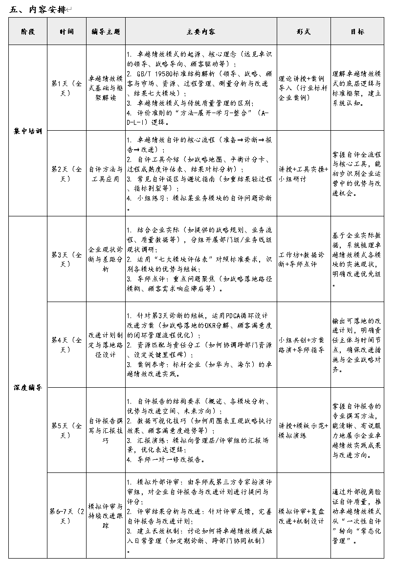 3. 总时长:7天(2天集中培训+5天深度辅导)。